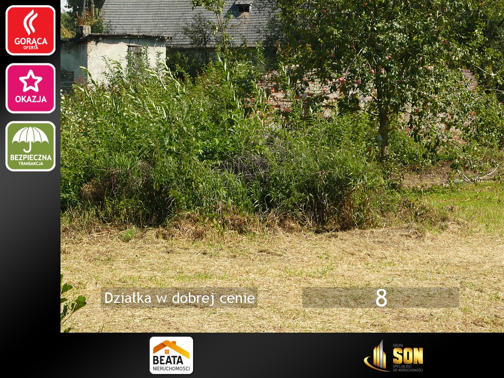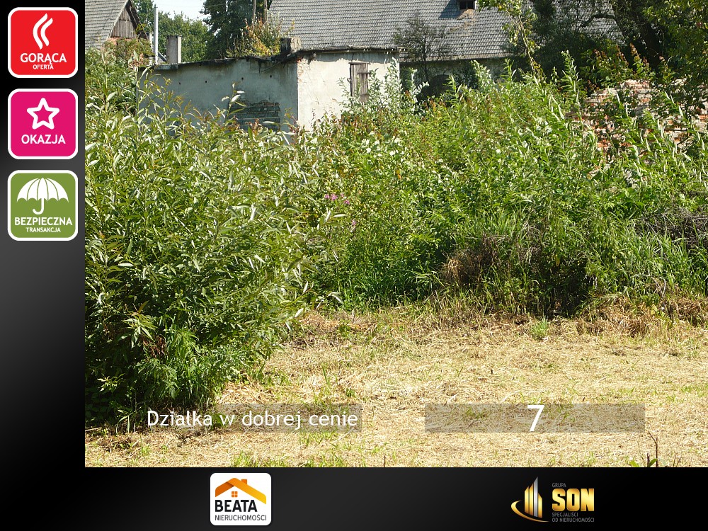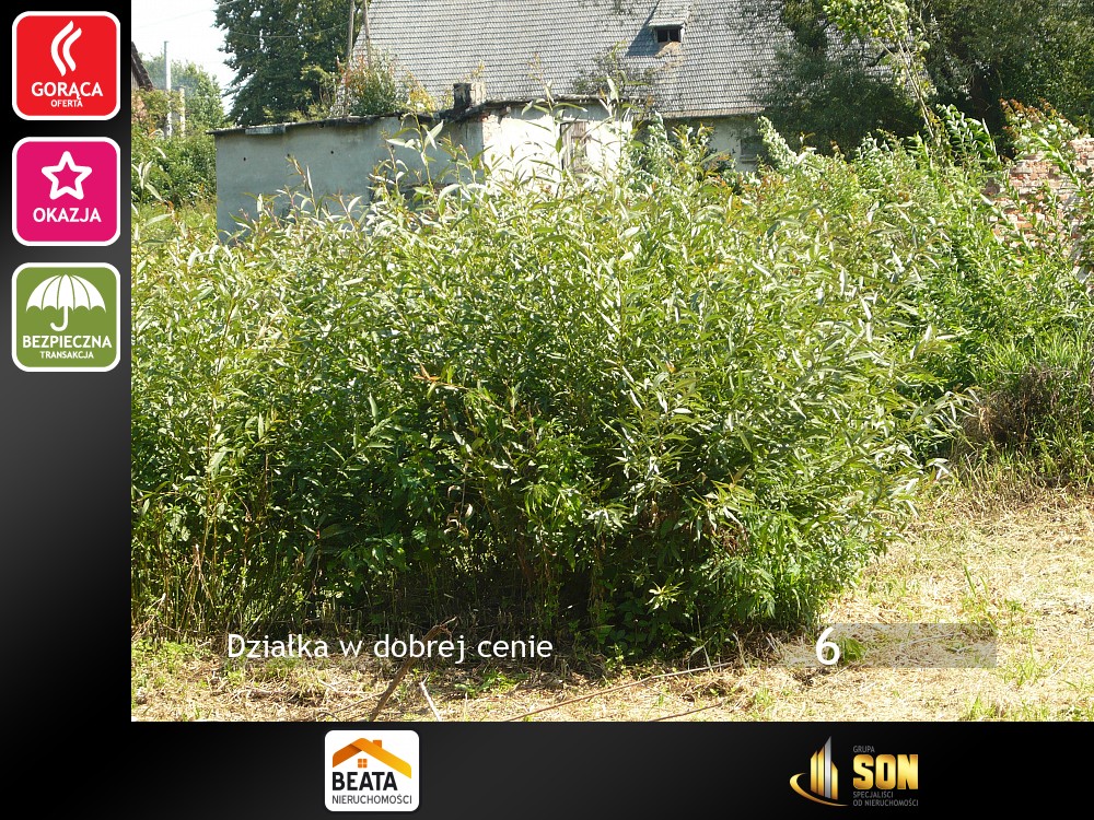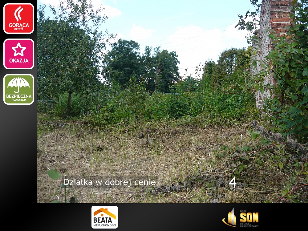 Oferujemy do sprzedaży działkę o powierzchni 1350m2 oznaczonej jako Br-RIIIb; zlokalizowaną w Połomii gm. Tworóg. Na działce znajdują się pozostałości dawnej zabudowy mieszkalno - gospodarczej, kilka drzew i krzewów owocowych tj jabłoni oraz czarnej porzeczki. Kształt działki nieregularny, W miejscowym planie zagospodarowania przestrzennego posiada oznaczenie P3.17/MZ co oznacza tereny zabudowy zagrodowej położonej w terenach zurbanizowanych oraz symbol P3.16/ZP2 czyli tereny zieleni nieurządzonej.