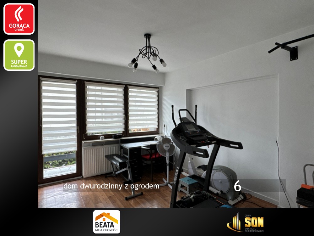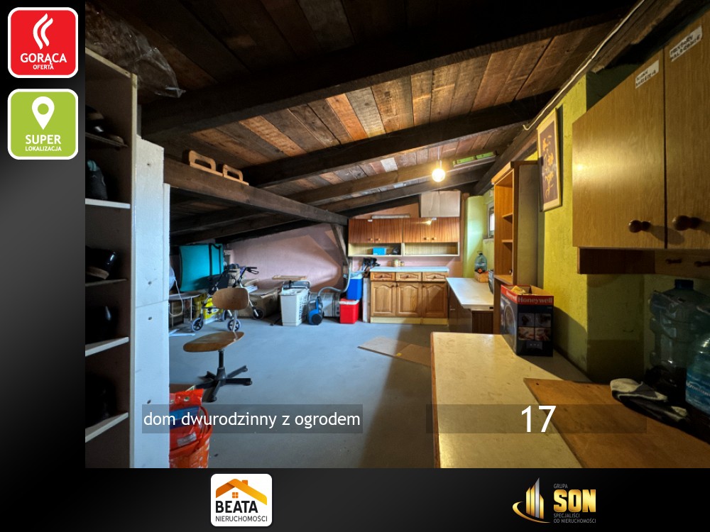 Nad mieszkaniem wysokie poddasze z możliwością zagospodarowania. Dom podpiwniczony w 3/4 powierzchni. W bryle budynku duży garaż 30mkw o wysokości 3,7m